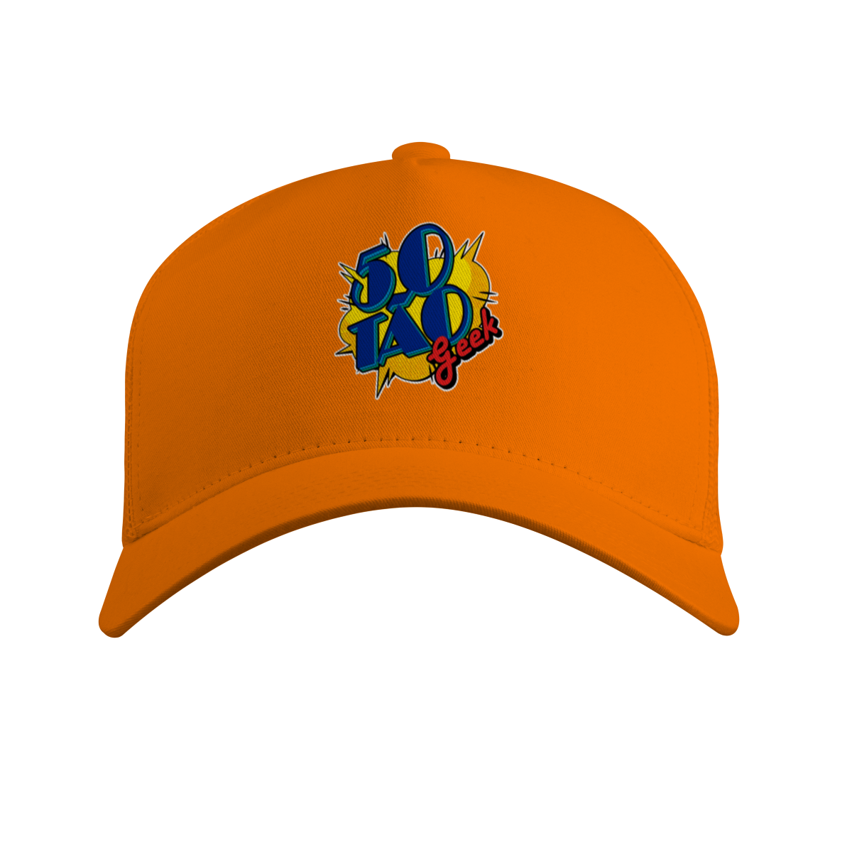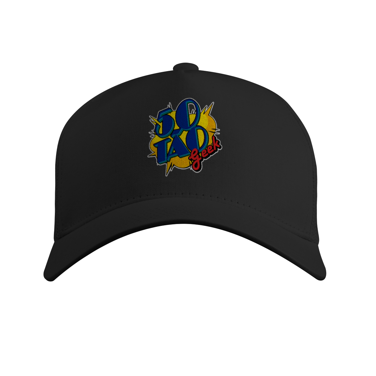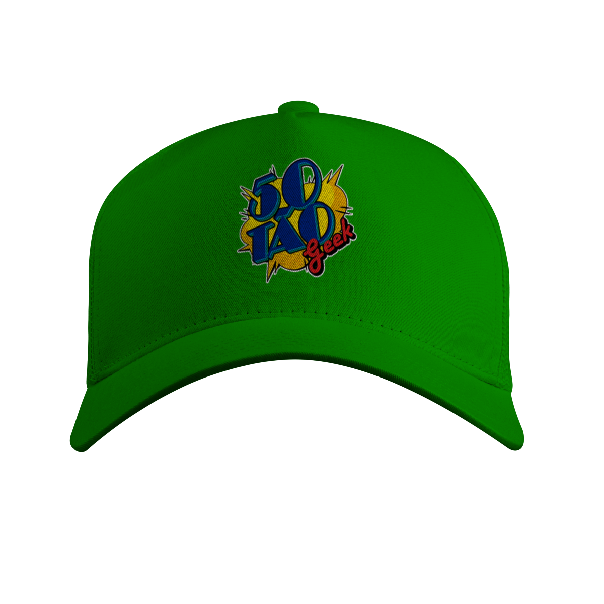 Descrição: O toque final para o uniforme da "franquia". Este boné oficial não apenas protege do sol, mas também sinaliza de longe que ali vai um fã raiz de cultura pop. Com o logotipo explosivo estilo Comic Book do 50Tão Geek em destaque frontal, ele traz aquela estética vibrante e nostálgica das HQs clássicas para o seu visual. É o acessório essencial para cobrir a cabeça onde a nerdolice corre solta.