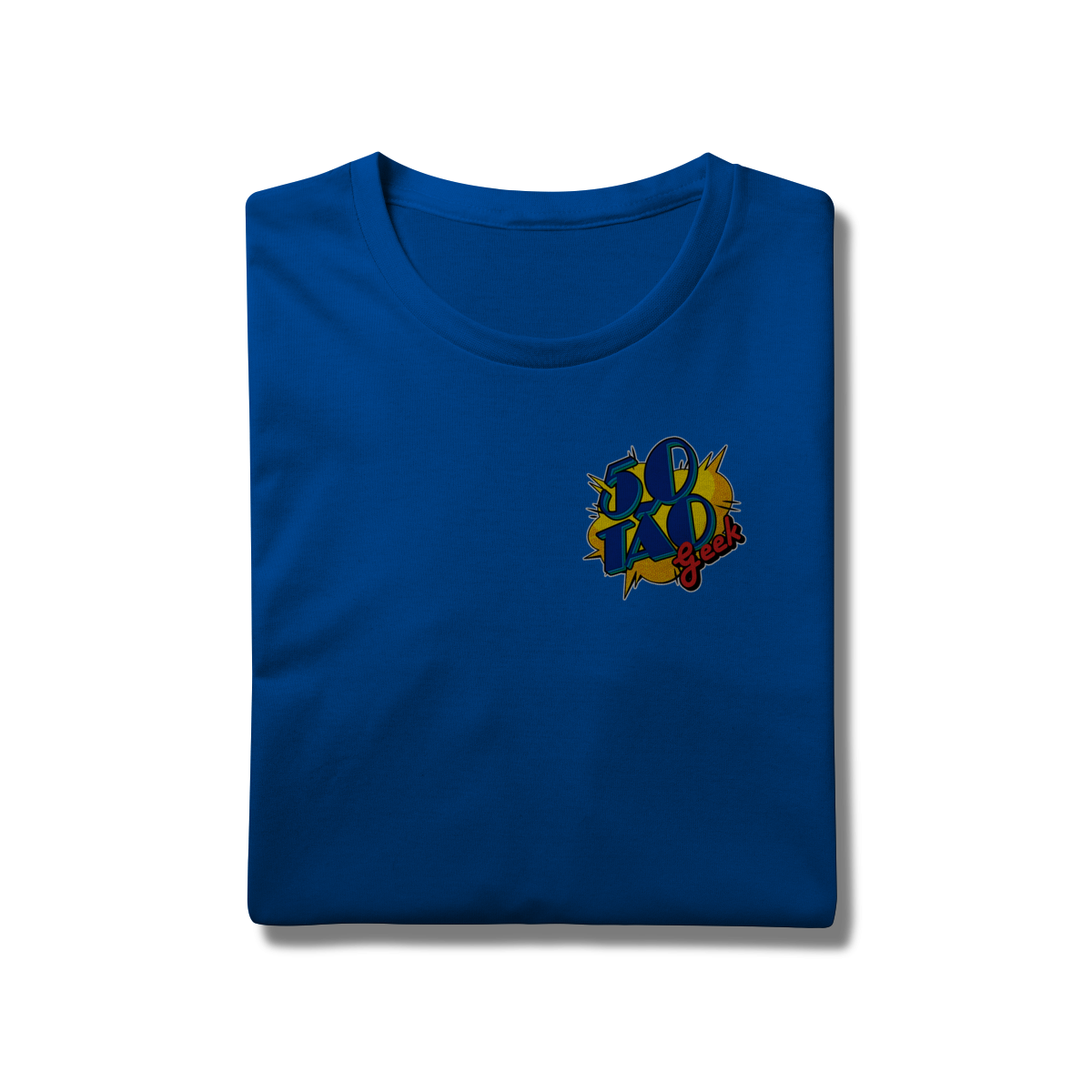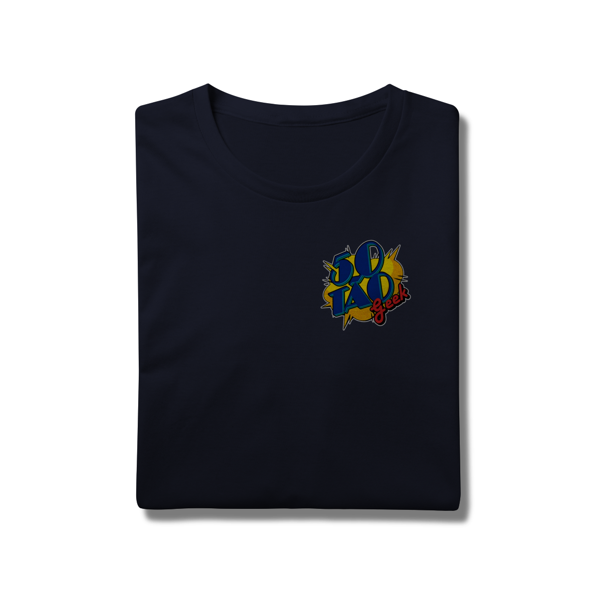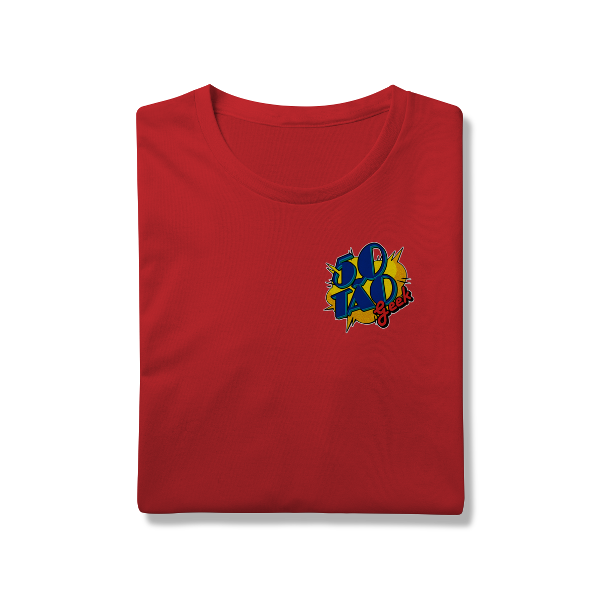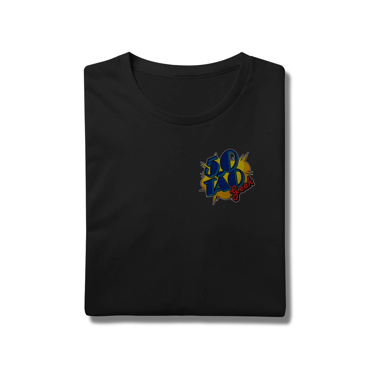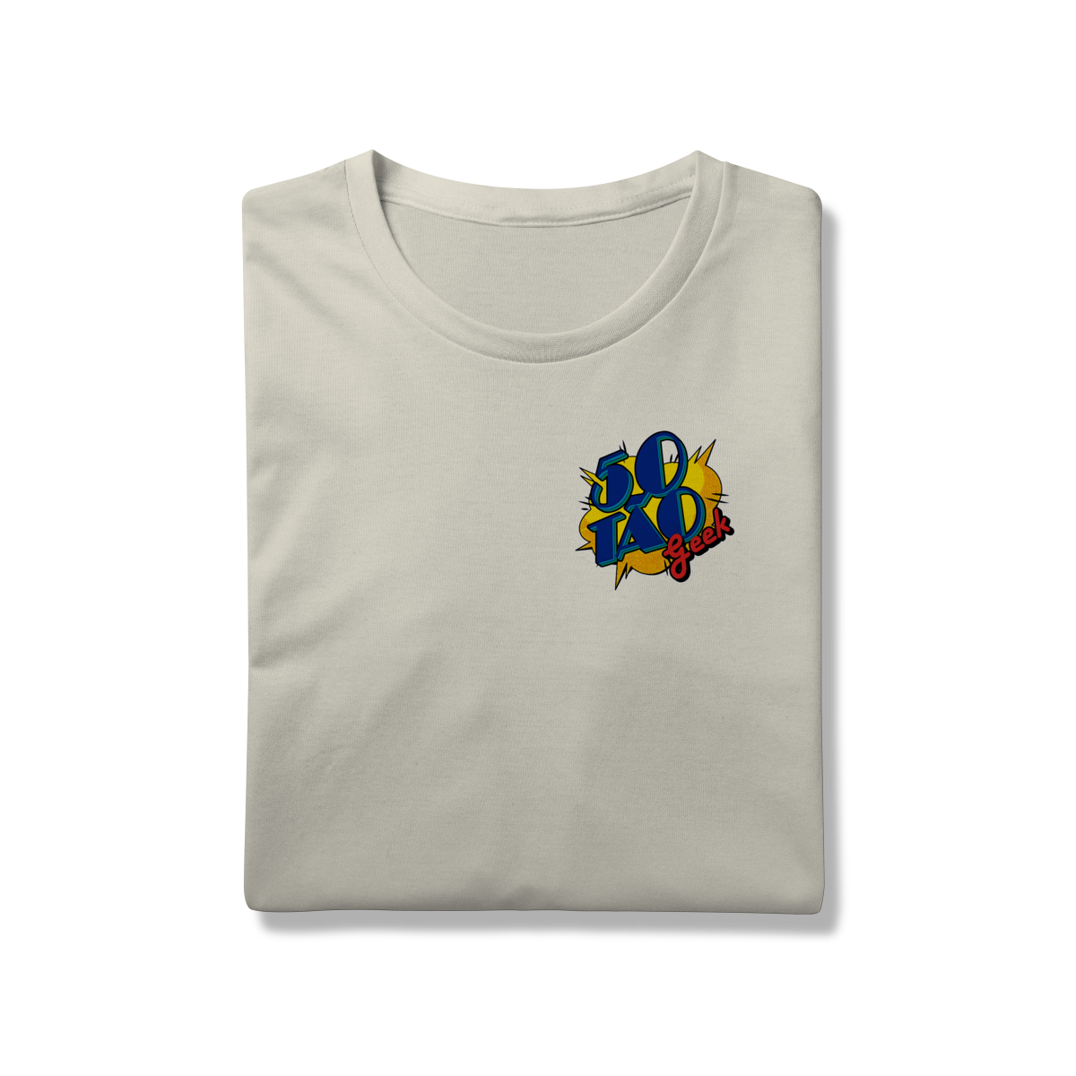A identidade visual que explode como um soco de uma HQ clássica. Este é o brasão oficial da nova "franquia" do 50Tão Geek. Com uma estética vibrante inspirada na Pop Art e nos quadrinhos da Era de Ouro, o design apresenta uma tipografia 3D dinâmica sobre um balão de fala explosivo, completo com texturas de retícula (halftone). É a estampa definitiva para quem vive a cultura nerd com intensidade, cor e, claro, sem papas na língua.