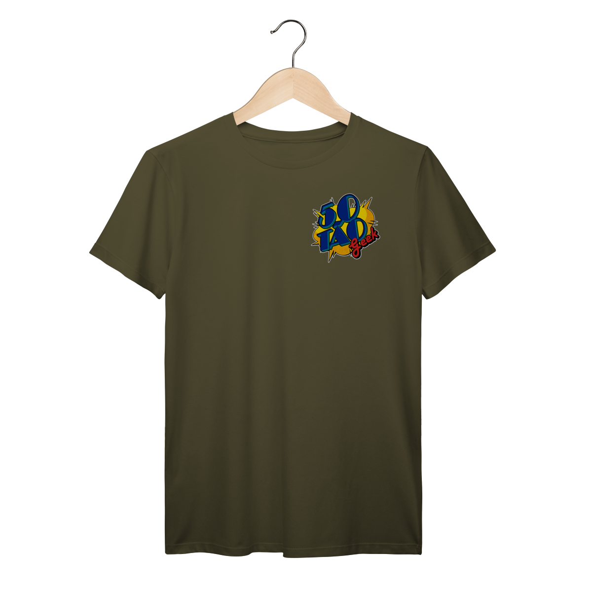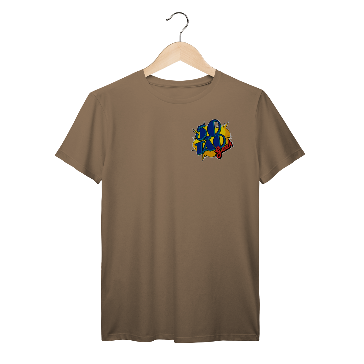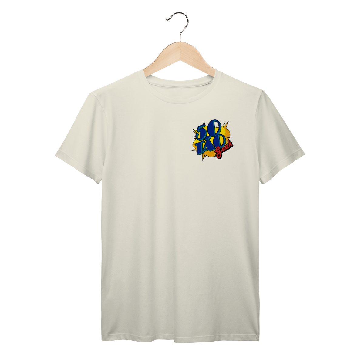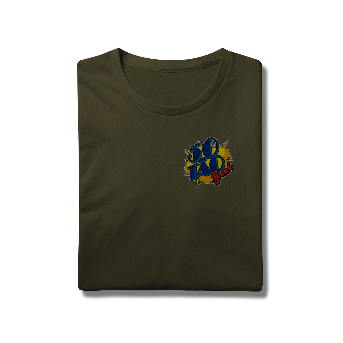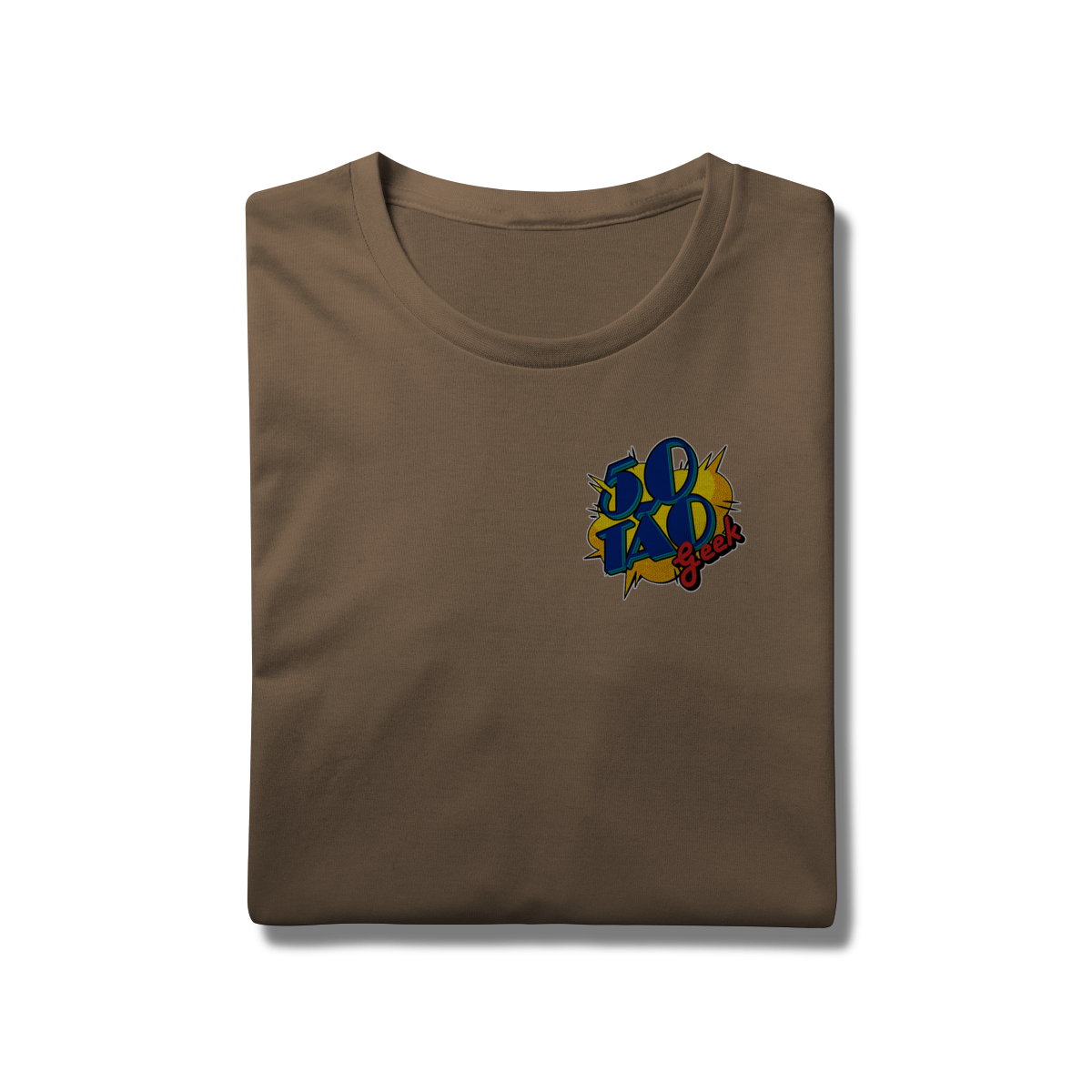 A identidade visual que explode como um soco de uma HQ clássica. Este é o brasão oficial da nova "franquia" do 50Tão Geek. Com uma estética vibrante inspirada na Pop Art e nos quadrinhos da Era de Ouro, o design apresenta uma tipografia 3D dinâmica sobre um balão de fala explosivo, completo com texturas de retícula (halftone). É a estampa definitiva para quem vive a cultura nerd com intensidade, cor e, claro, sem papas na língua.