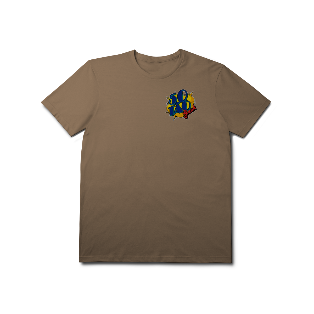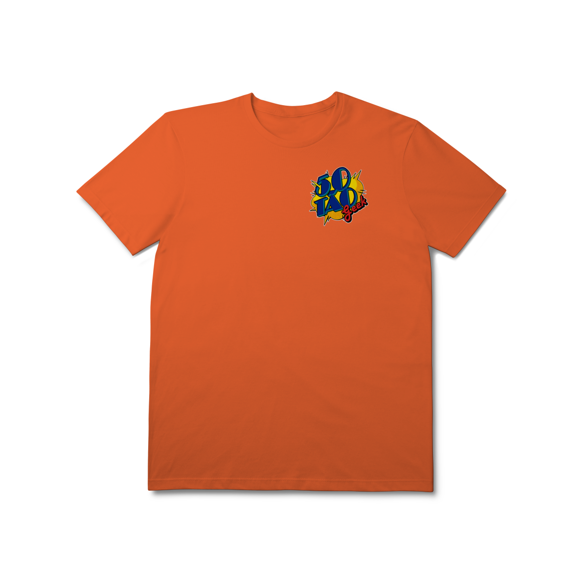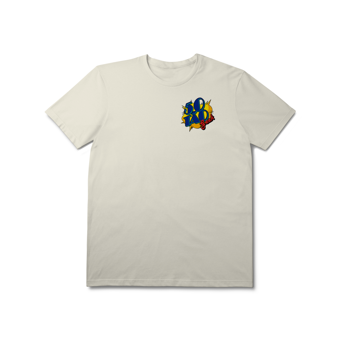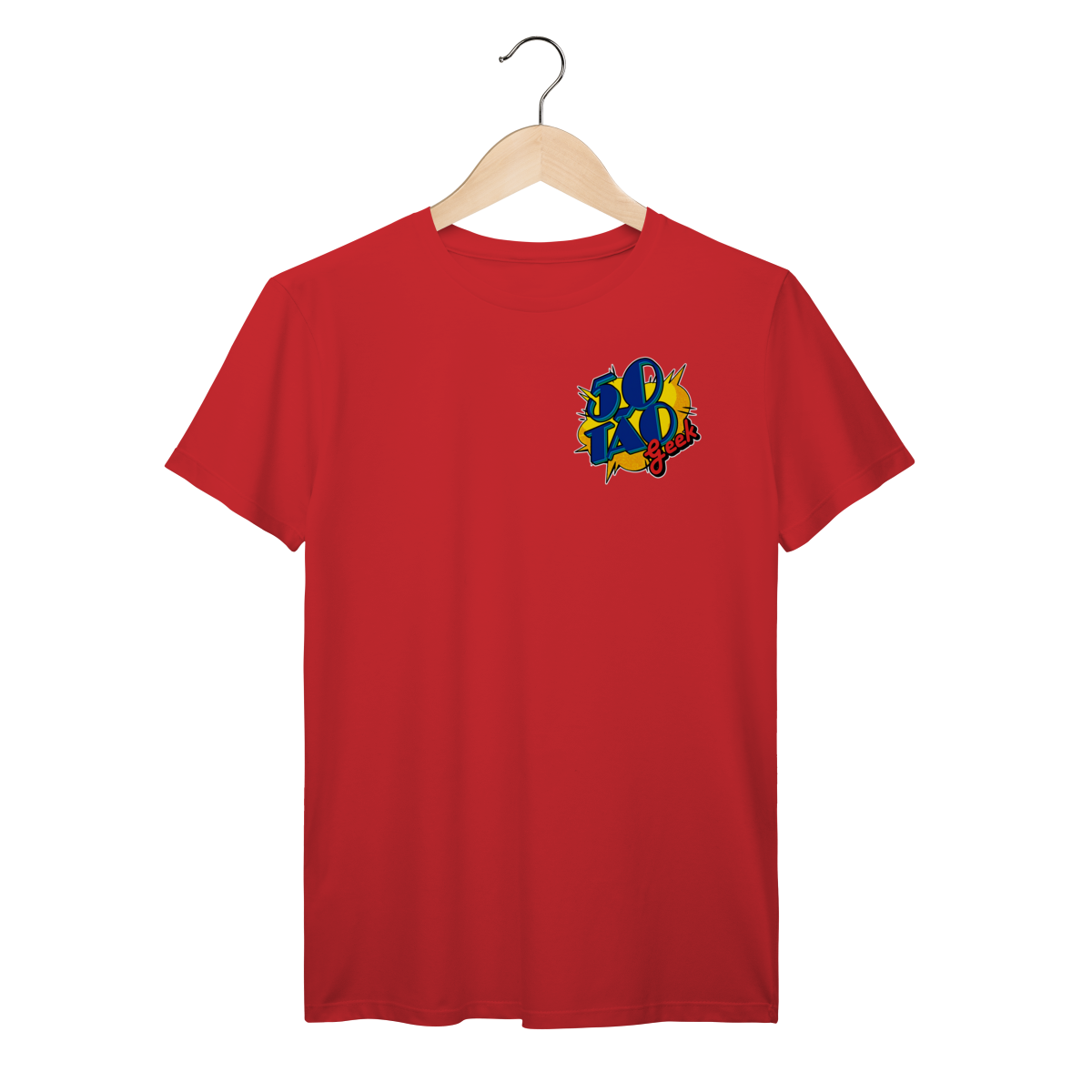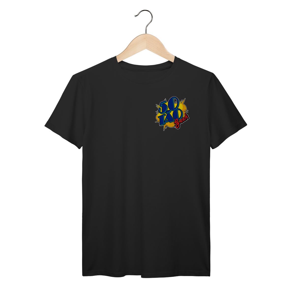 A identidade visual que explode como um soco de uma HQ clássica. Este é o brasão oficial da nova "franquia" do 50Tão Geek. Com uma estética vibrante inspirada na Pop Art e nos quadrinhos da Era de Ouro, o design apresenta uma tipografia 3D dinâmica sobre um balão de fala explosivo, completo com texturas de retícula (halftone). É a estampa definitiva para quem vive a cultura nerd com intensidade, cor e, claro, sem papas na língua.