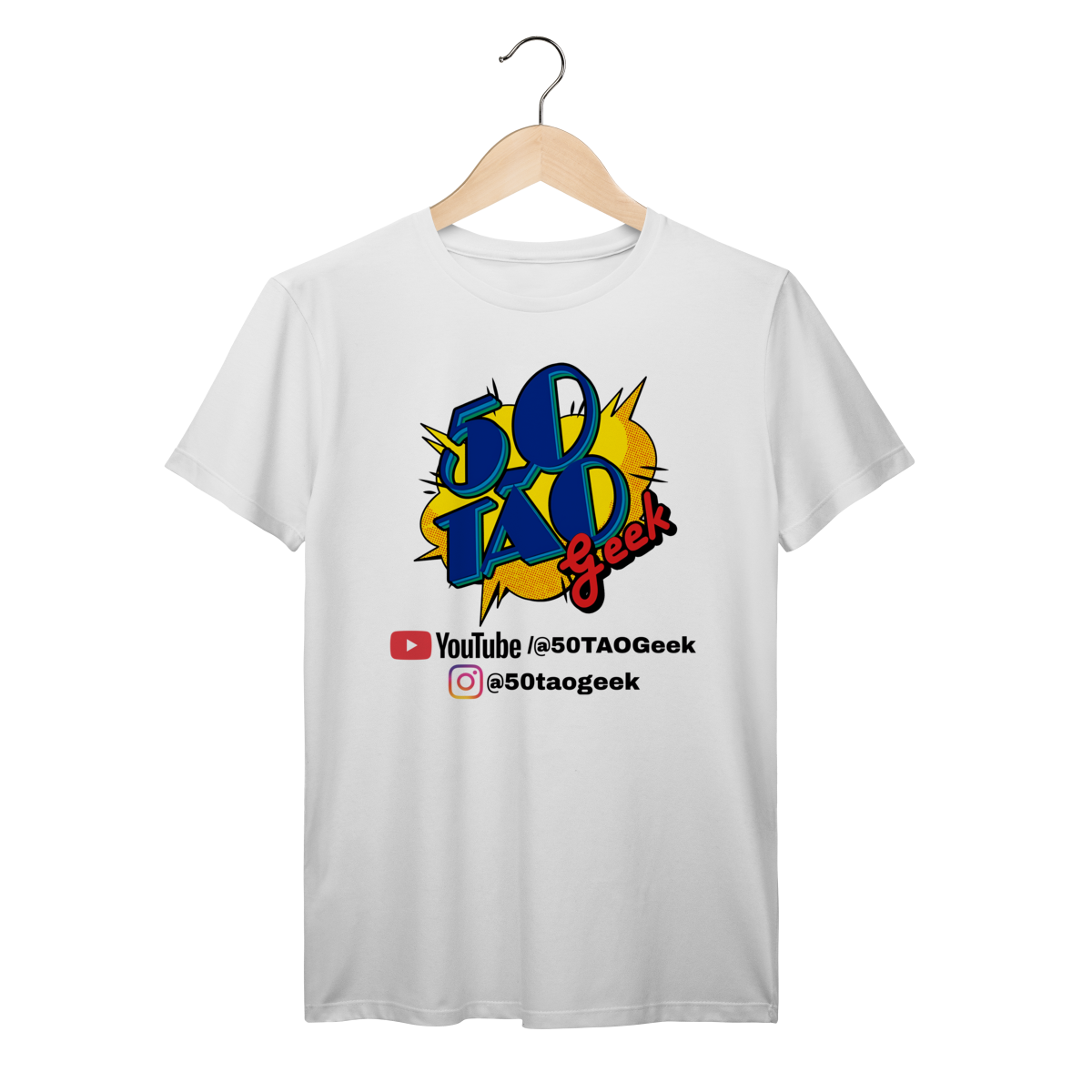 Transforme-se em um outdoor ambulante da "franquia" mais sincera da internet. Esta versão do logotipo explosivo estilo Pop Art do 50Tão Geek vai além da identidade visual nostálgica dos quadrinhos; ela funciona como um chamado direto para a ação. Com os endereços oficiais do YouTube e Instagram estampados logo abaixo do balão de fala, você veste a camisa (literalmente) e ajuda a espalhar a palavra da nerdolice sem filtro por onde passar.