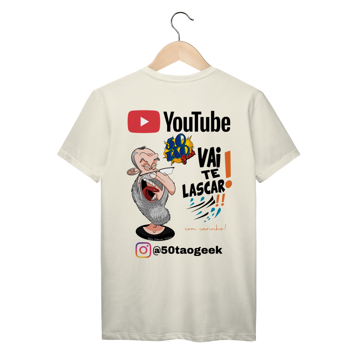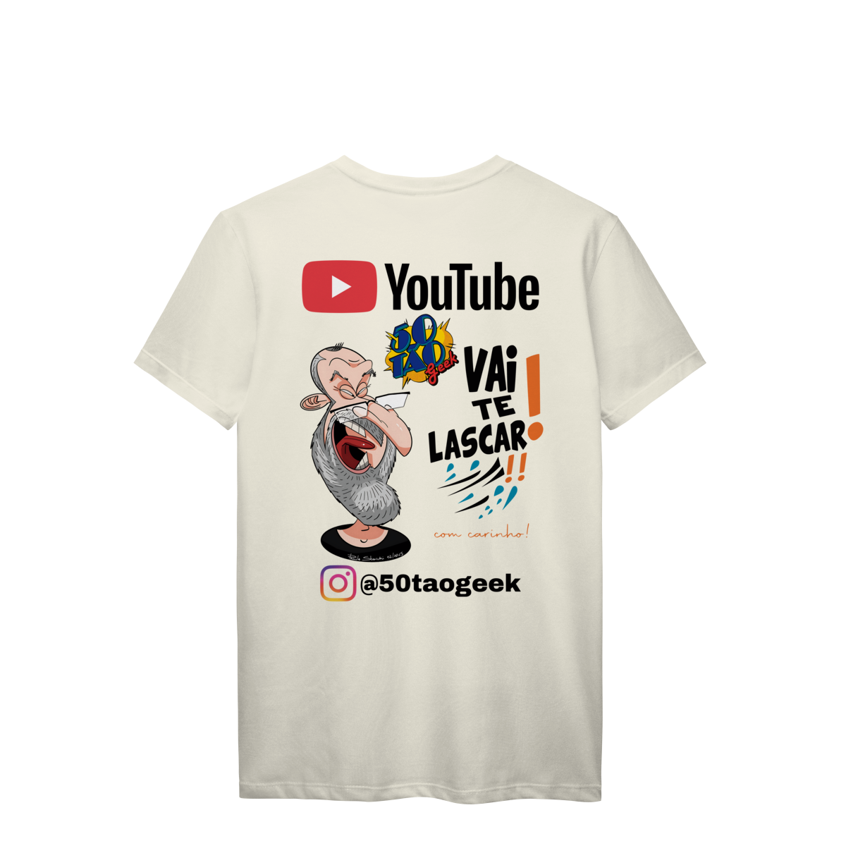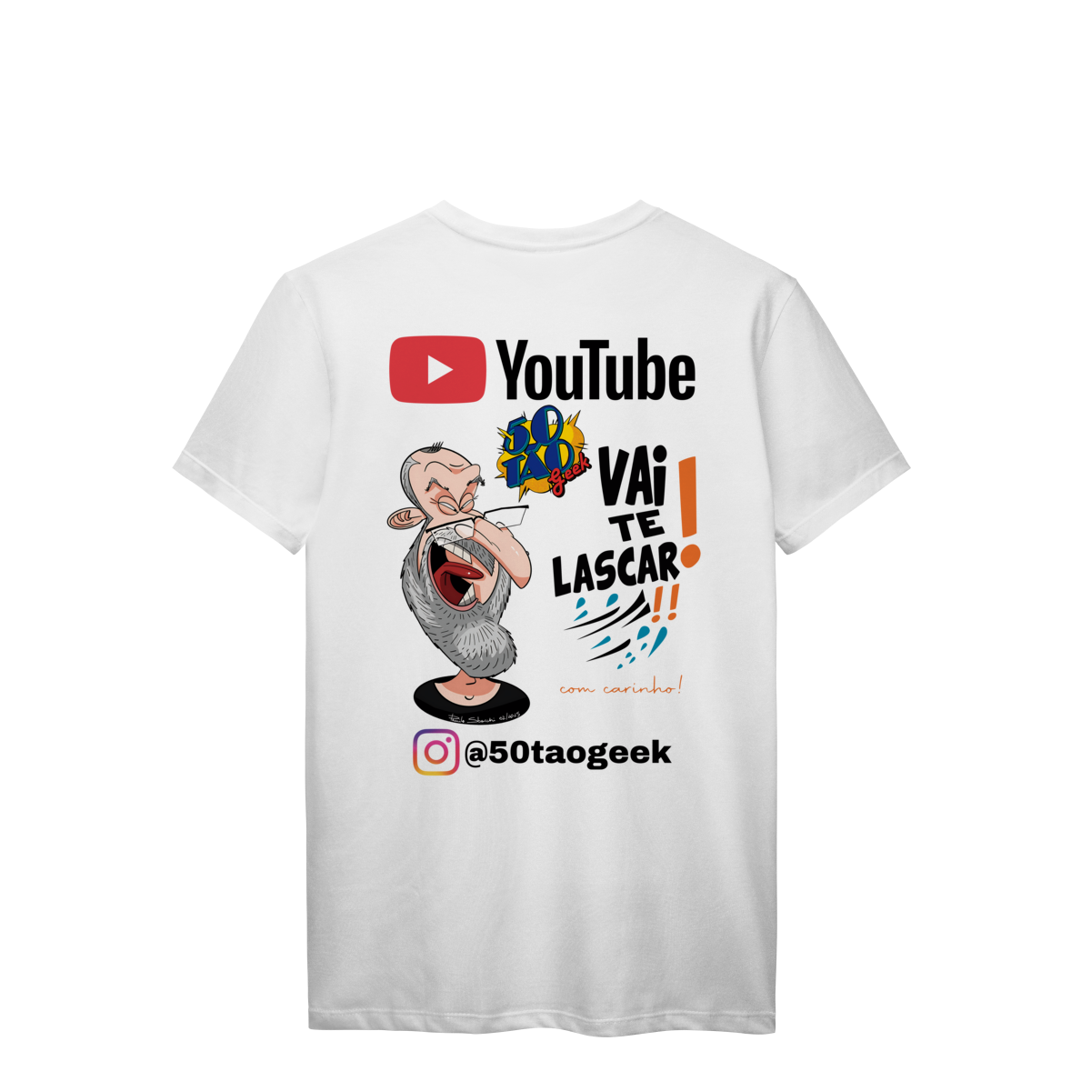A "franquia" mais sincera da internet chegou à loja. Esta estampa oficial celebra a essência única do 50Tão Geek: muita nerdolice, opiniões sem filtro sobre cultura pop e aquele acolhimento do jeito dele. A peça traz uma caricatura exclusiva e cheia de personalidade, criada pelo artista italiano Paulo Sbacchi, acompanhada do bordão que já virou lei no canal. É o uniforme perfeito para quem curte debater filmes, séries e animes sem frescura, mas sempre com bom humor.