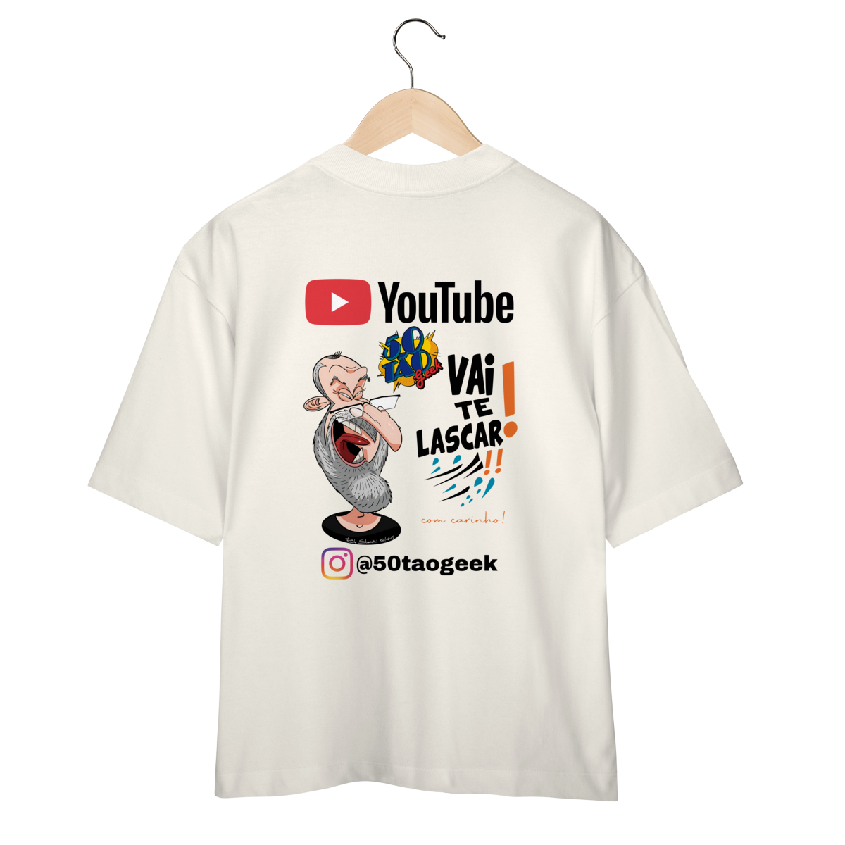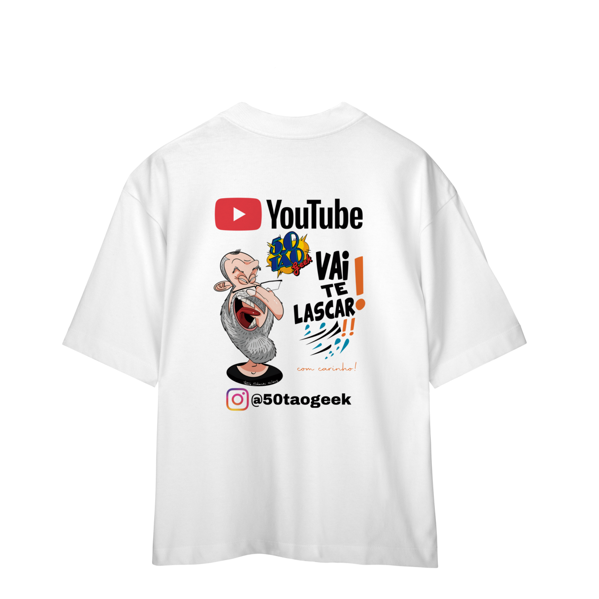 A "franquia" mais sincera da internet chegou à loja. Esta estampa oficial celebra a essência única do 50Tão Geek: muita nerdolice, opiniões sem filtro sobre cultura pop e aquele acolhimento do jeito dele. A peça traz uma caricatura exclusiva e cheia de personalidade, criada pelo artista italiano Paulo Sbacchi, acompanhada do bordão que já virou lei no canal. É o uniforme perfeito para quem curte debater filmes, séries e animes sem frescura, mas sempre com bom humor.