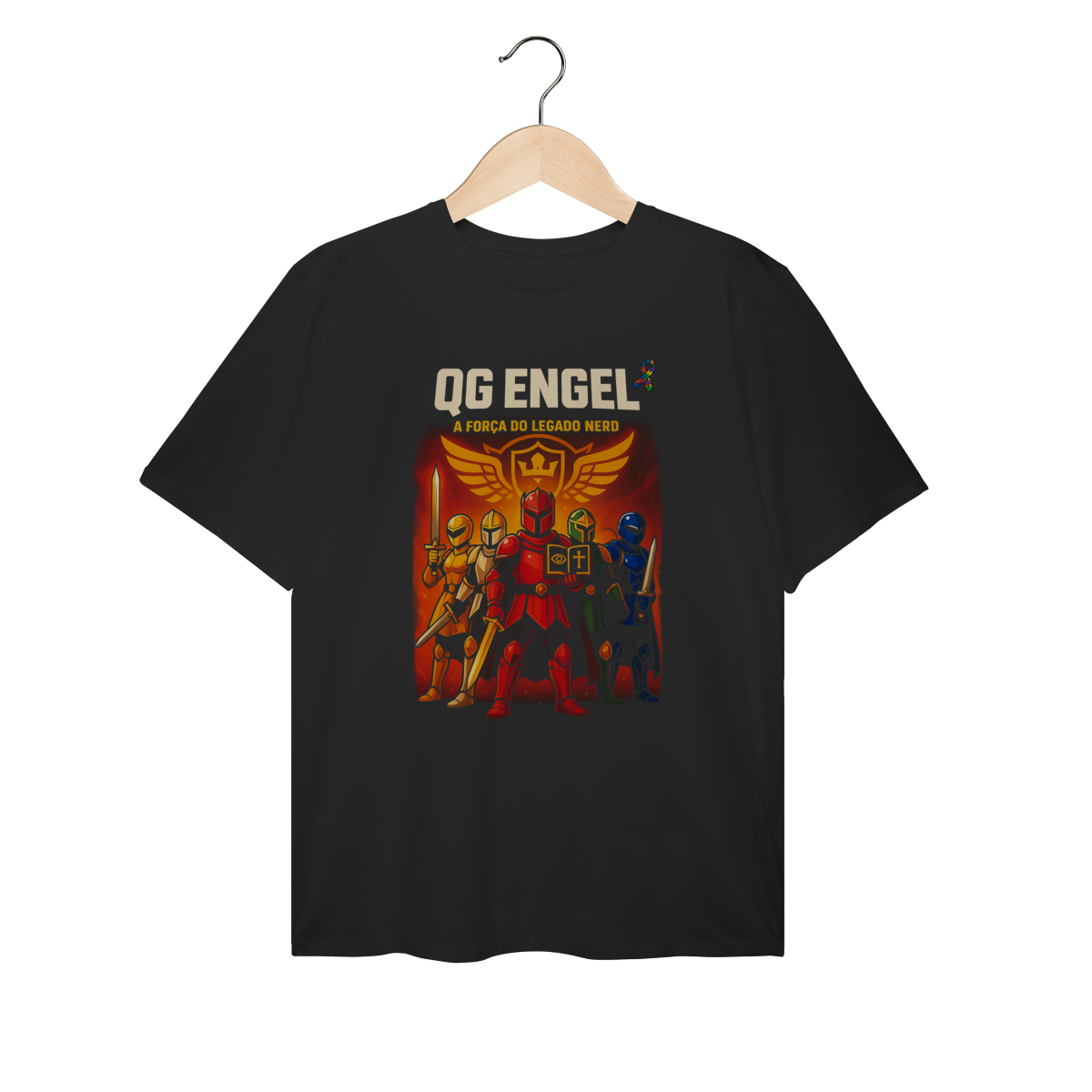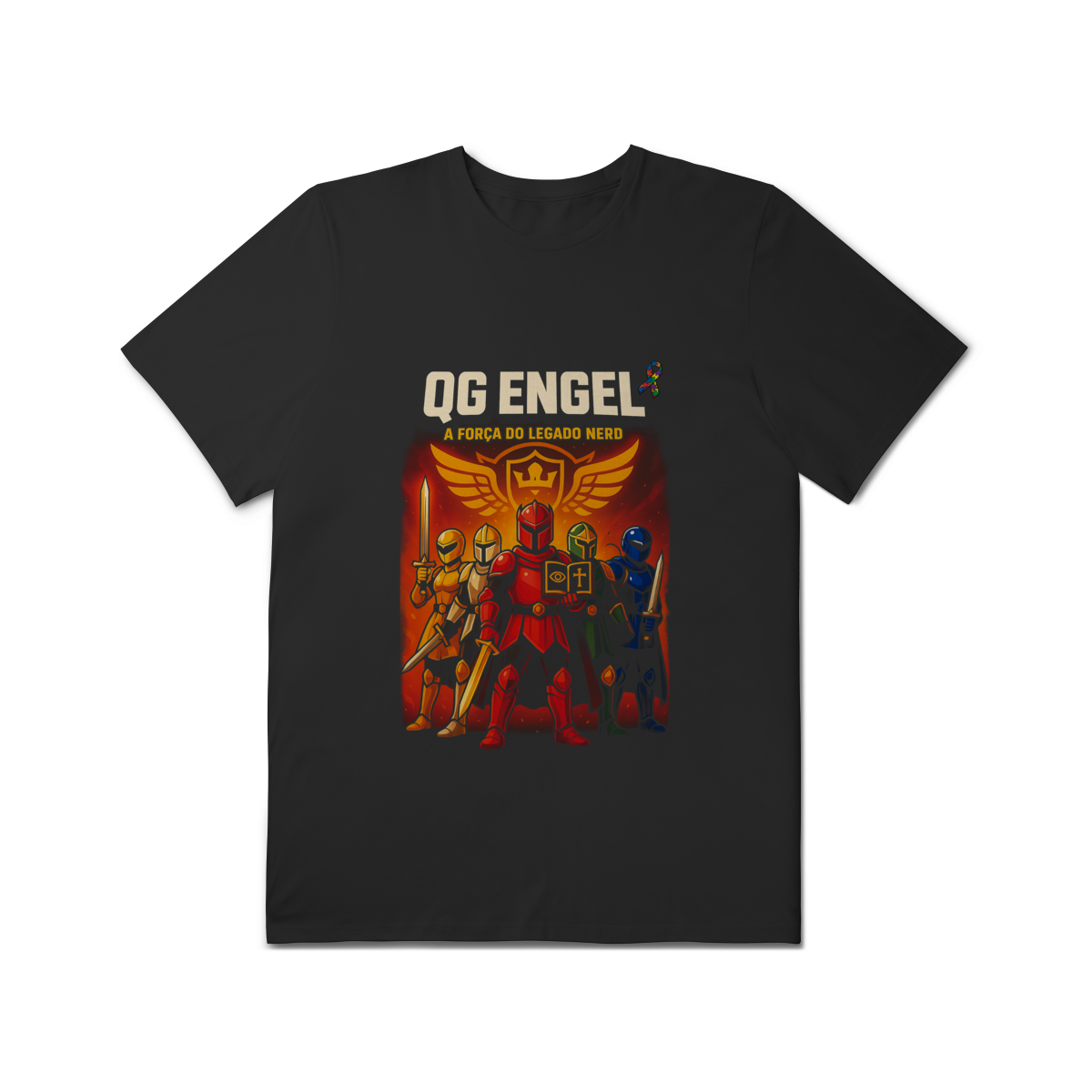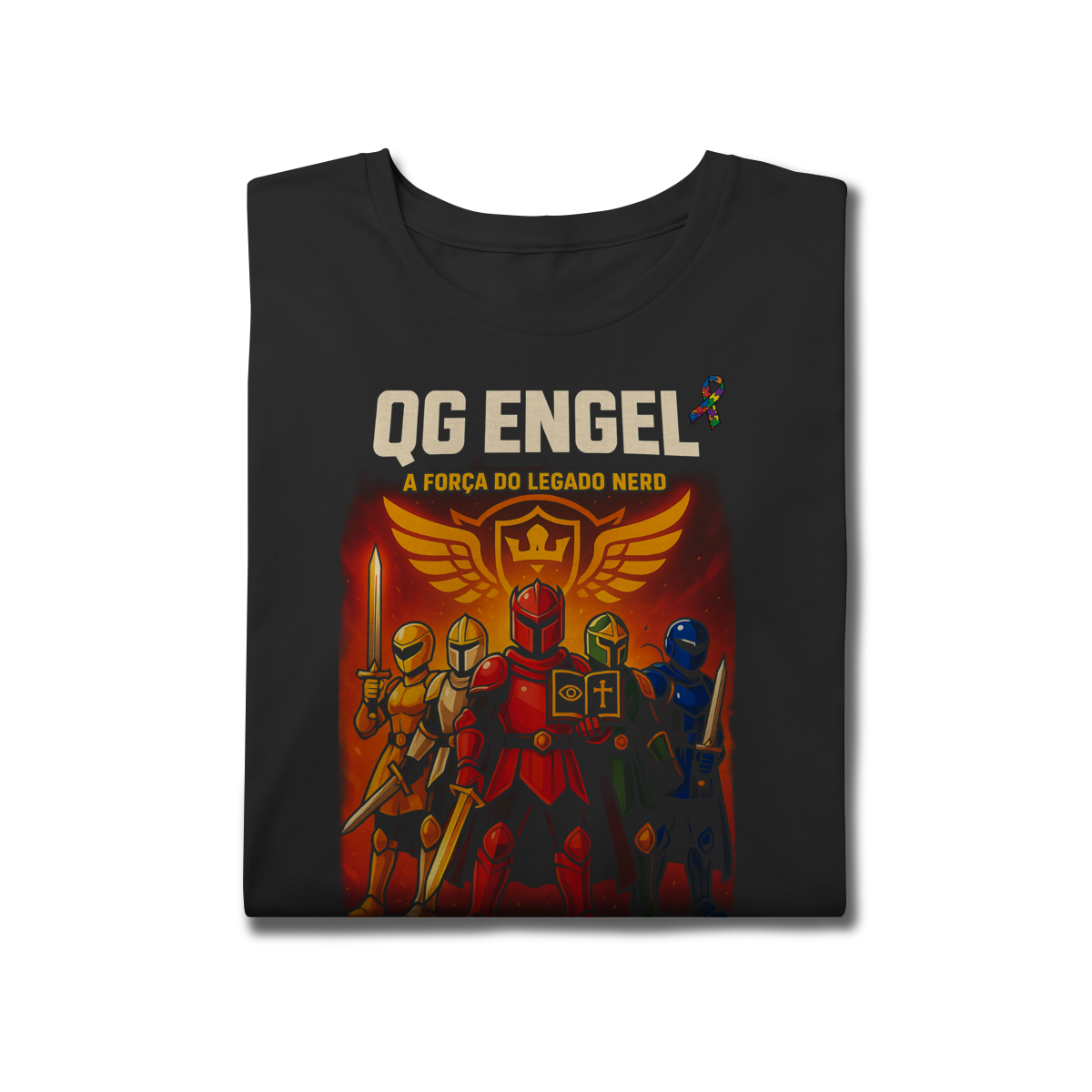 Quando a honra da távola redonda encontra a energia dos esquadrões coloridos. Esta arte espetacular reimagina a clássica formação de heróis Tokusatsu com uma estética medieval imponente. Os cinco cavaleiros, trajando armaduras nas cores lendárias (Vermelho, Azul, Verde, Amarelo e Branco/Prata), protegem o "Grimório do Conhecimento Nerd". O líder, ao centro, empunha o livro com o brasão do canal, simbolizando que a verdadeira força vem do estudo e da paixão pela cultura pop. Uma estampa épica para quem defende esse legado.