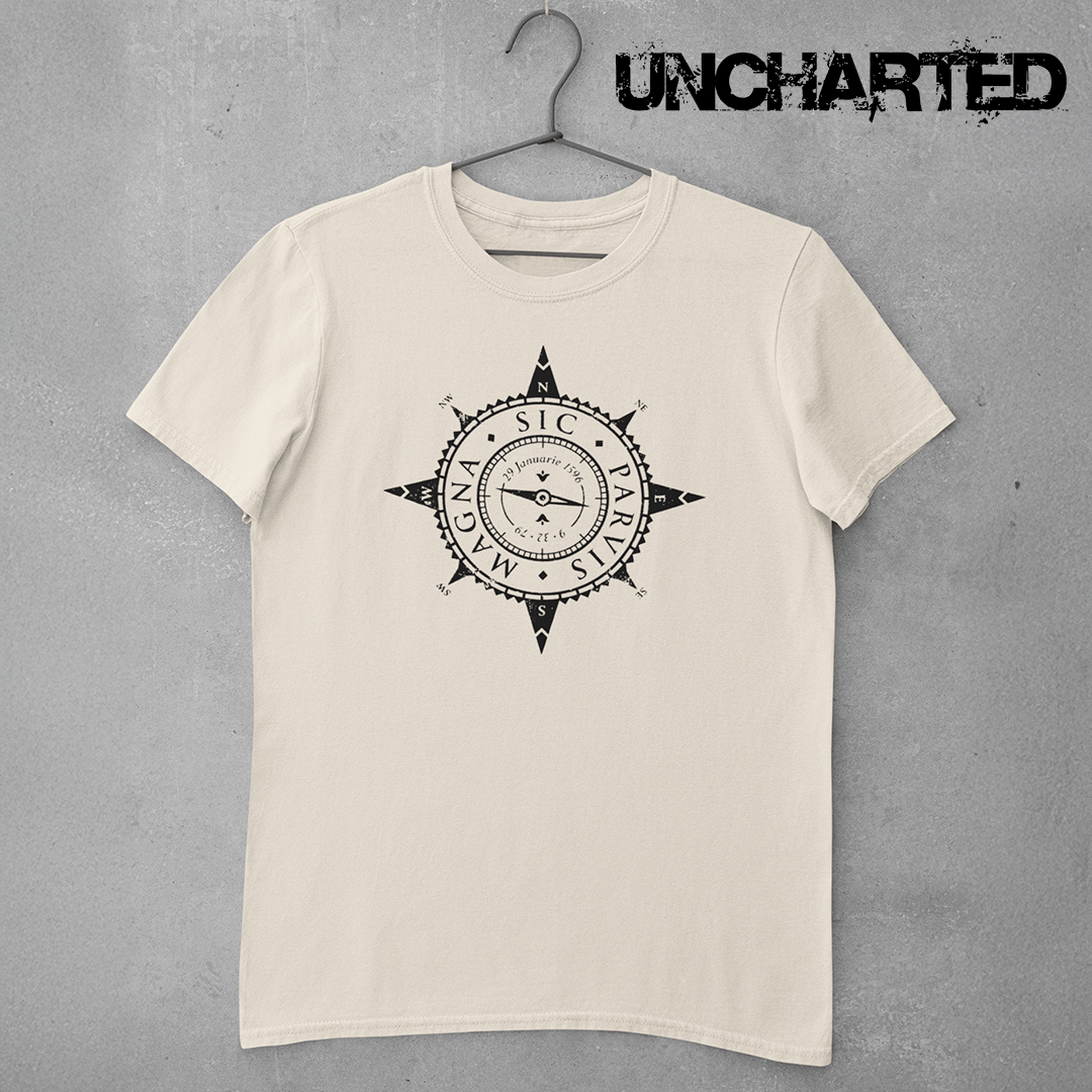Essa camiseta traz a icônica rosa dos ventos acompanhada da frase que se tornou lema de Nathan Drake e de toda a saga Uncharted. Minimalista, elegante e cheia de significado, é o tipo de estampa que só os verdadeiros exploradores vão reconhecer.