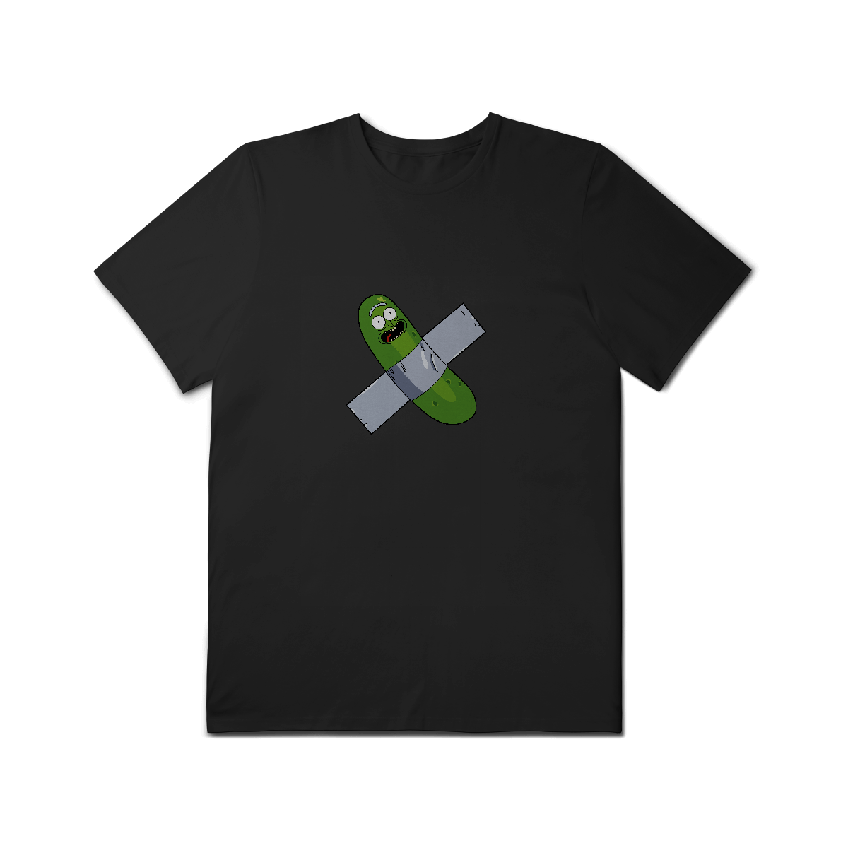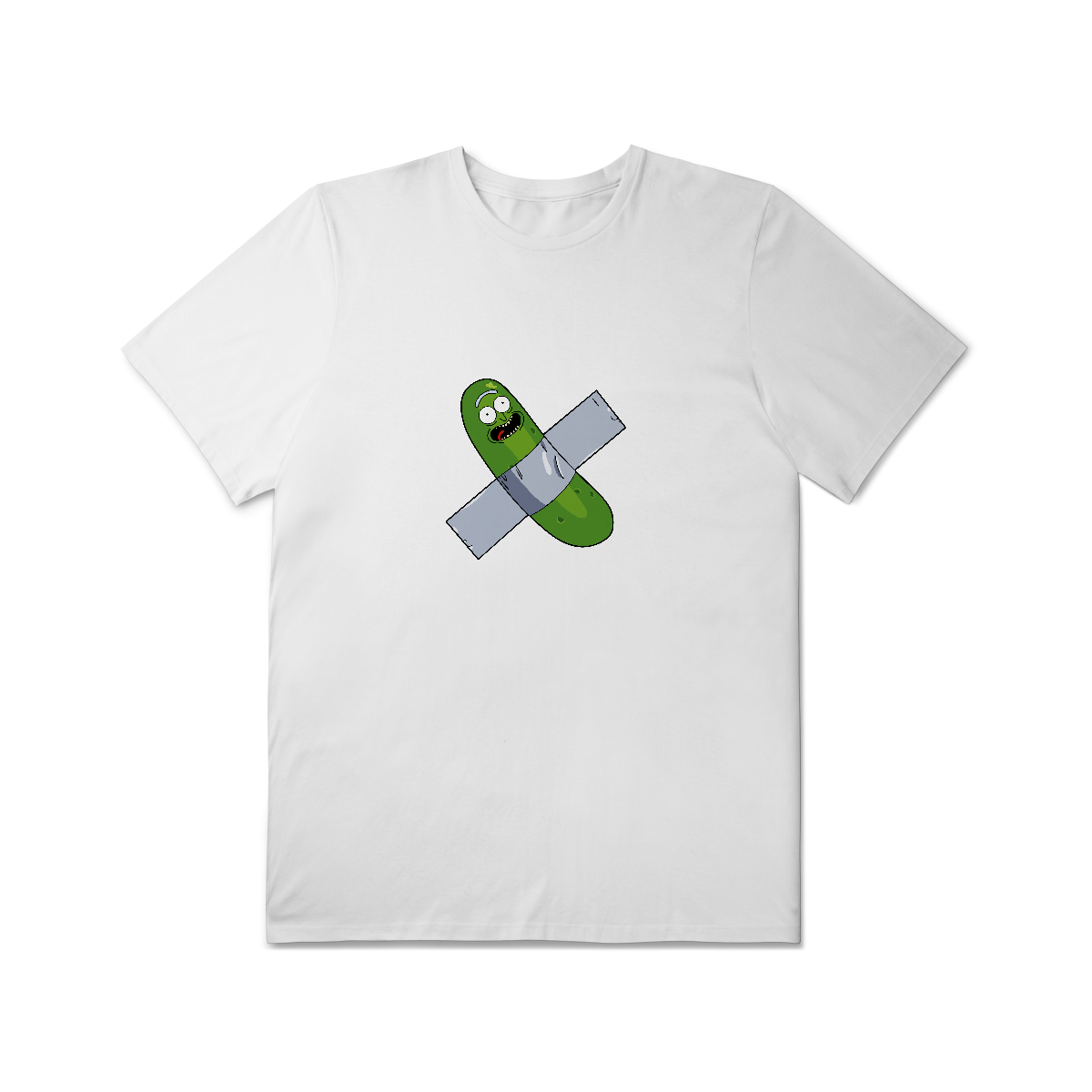Inspirada na obra “Comedian”, de Maurizio Cattelan — aquela mesma banana colada na parede — essa estampa traz Rick Sanchez no papel perfeito: o gênio que zomba da arte, da ciência e da própria existência.
