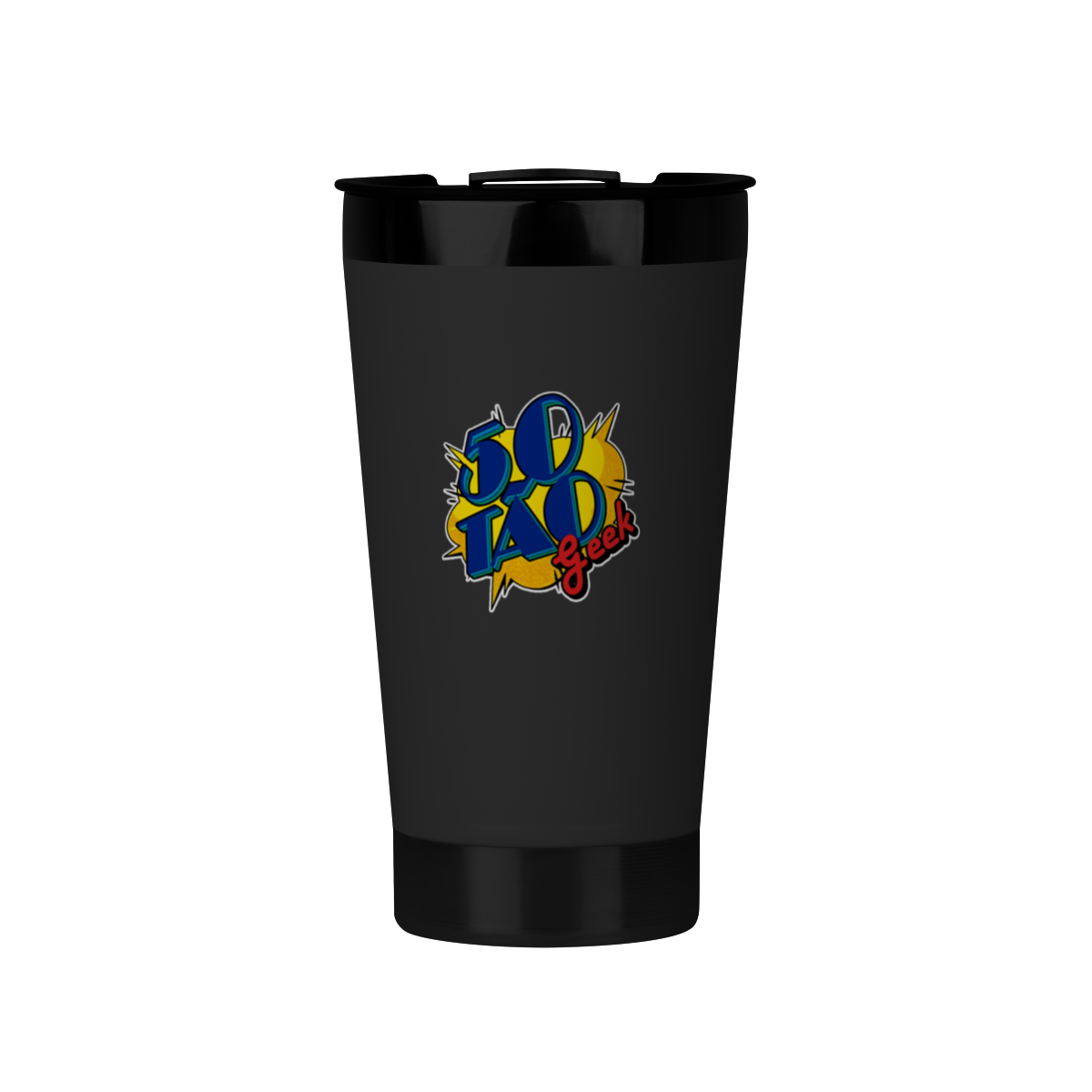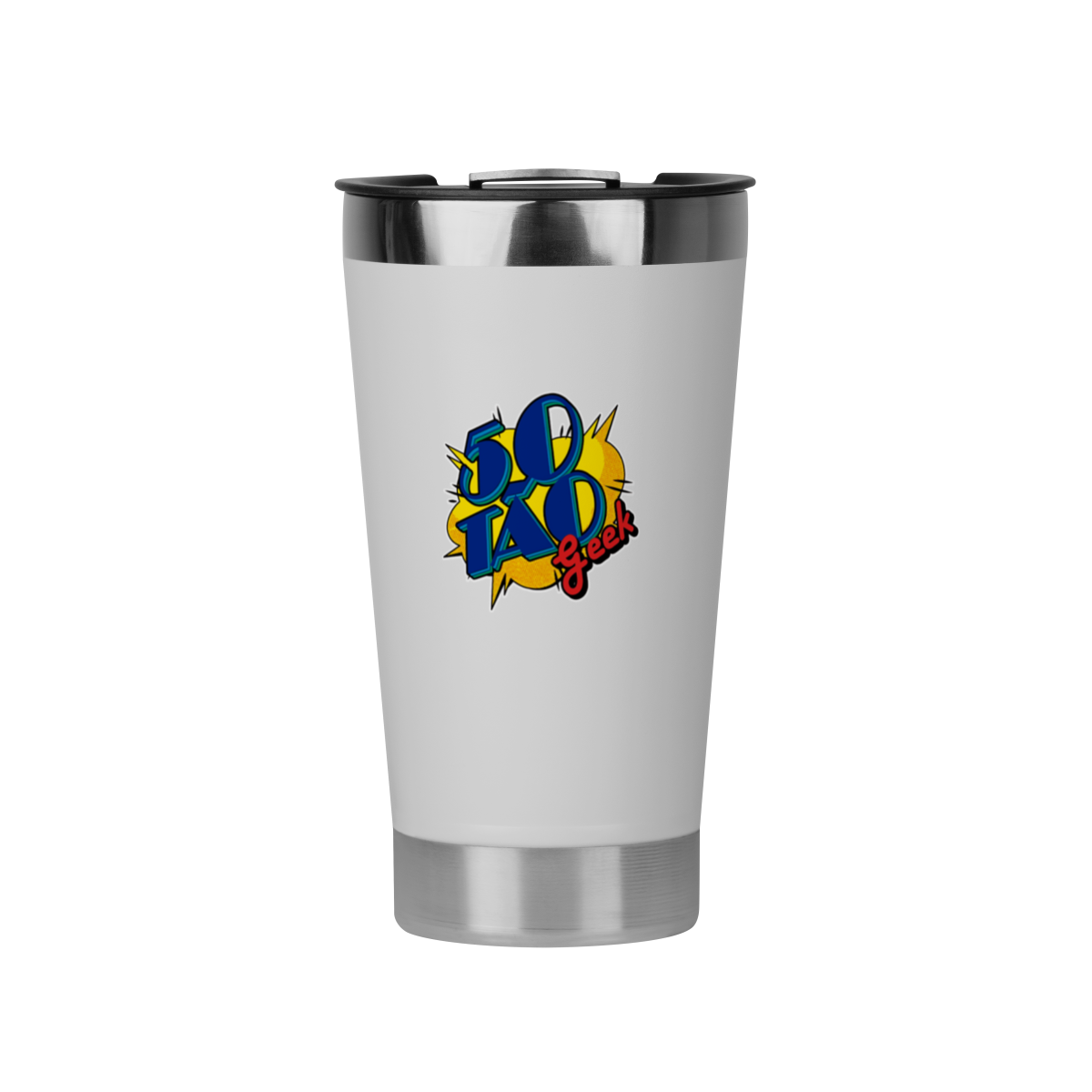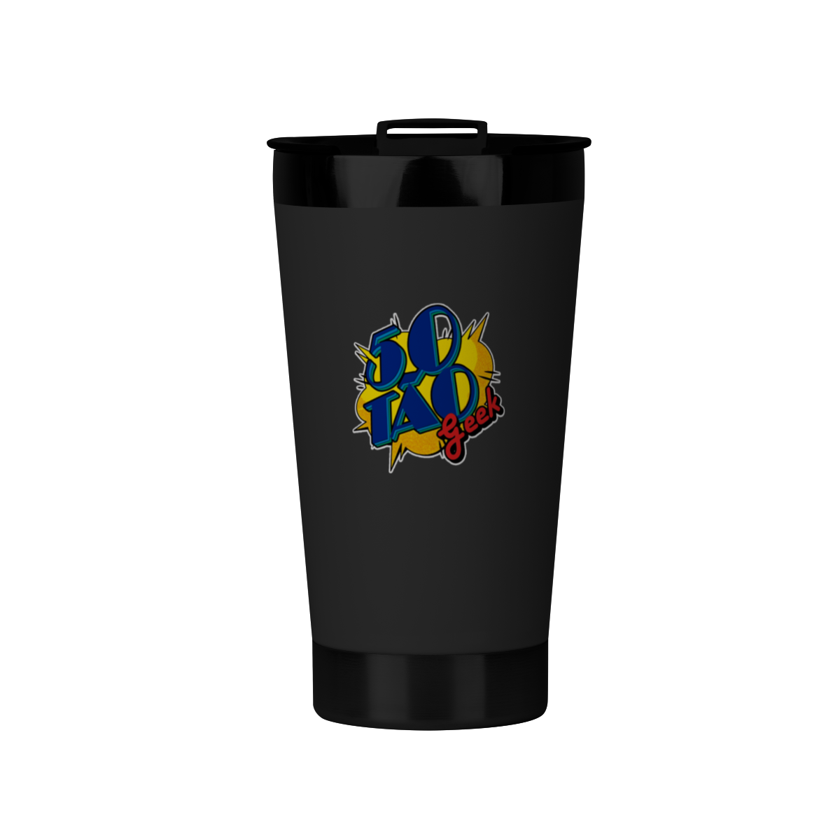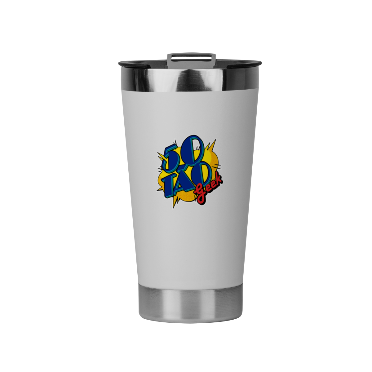 Mantenha a temperatura da sua bebida tão quente quanto as suas opiniões sobre cultura pop. Este copo térmico oficial traz o logotipo explosivo estilo Pop Art do 50Tão Geek. Seja para enfrentar uma maratona de filmes clássicos, horas de gameplay intenso ou enquanto assiste aos vídeos "sem filtro" da franquia, ele garante que seu café, chá ou bebida gelada esteja sempre no ponto ideal. É o combustível necessário para que a nerdolice corra solta na sua mesa.