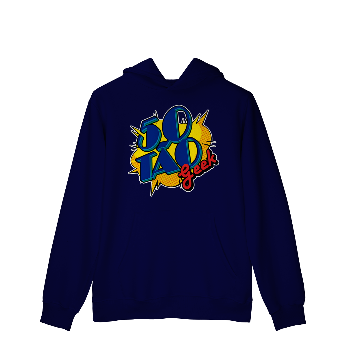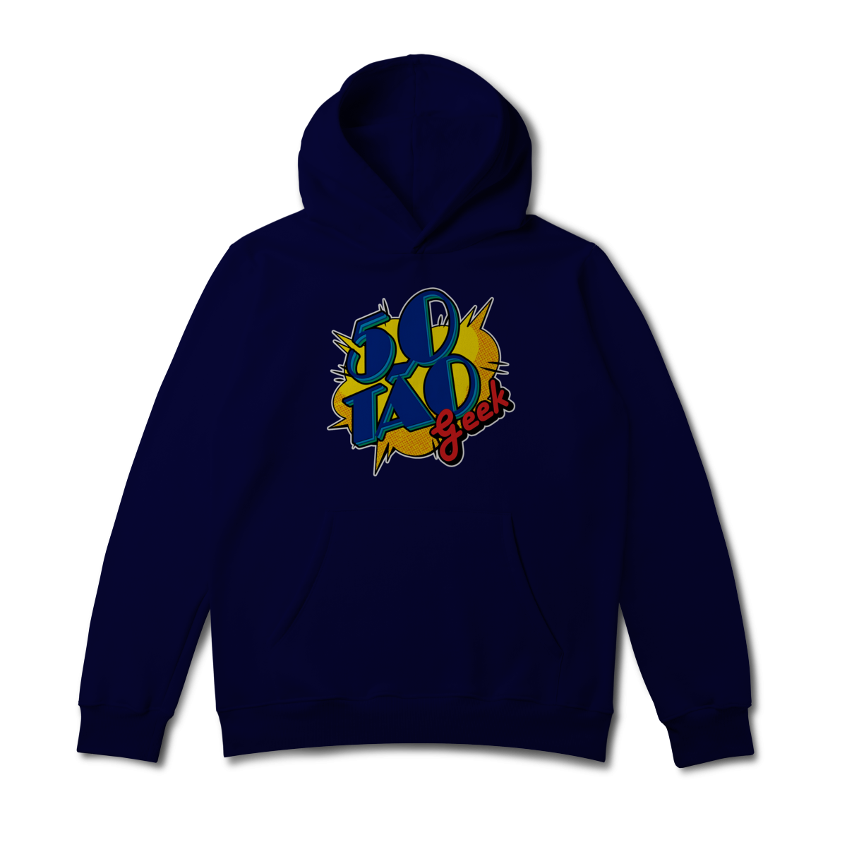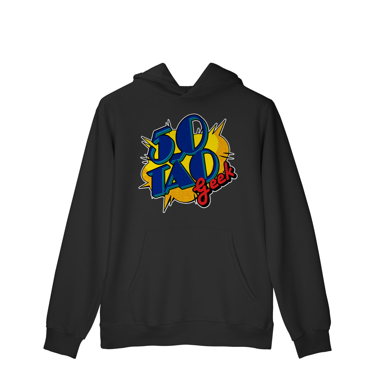 A verdadeira idade está na carteira de identidade; a alma é eternamente geek. Esta ilustração espetacular define o espírito do 50Tão Geek. Retratando a figura madura do criador, o design explode em cores e nostalgia dentro do próprio logotipo do canal em seu peito. Ícones lendários de heróis e vilões clássicos se misturam em uma colagem vibrante, simbolizando décadas de paixão pela cultura pop que agora transbordam em cada vídeo. É a estampa para quem sabe que a nerdolice não tem prazo de validade.