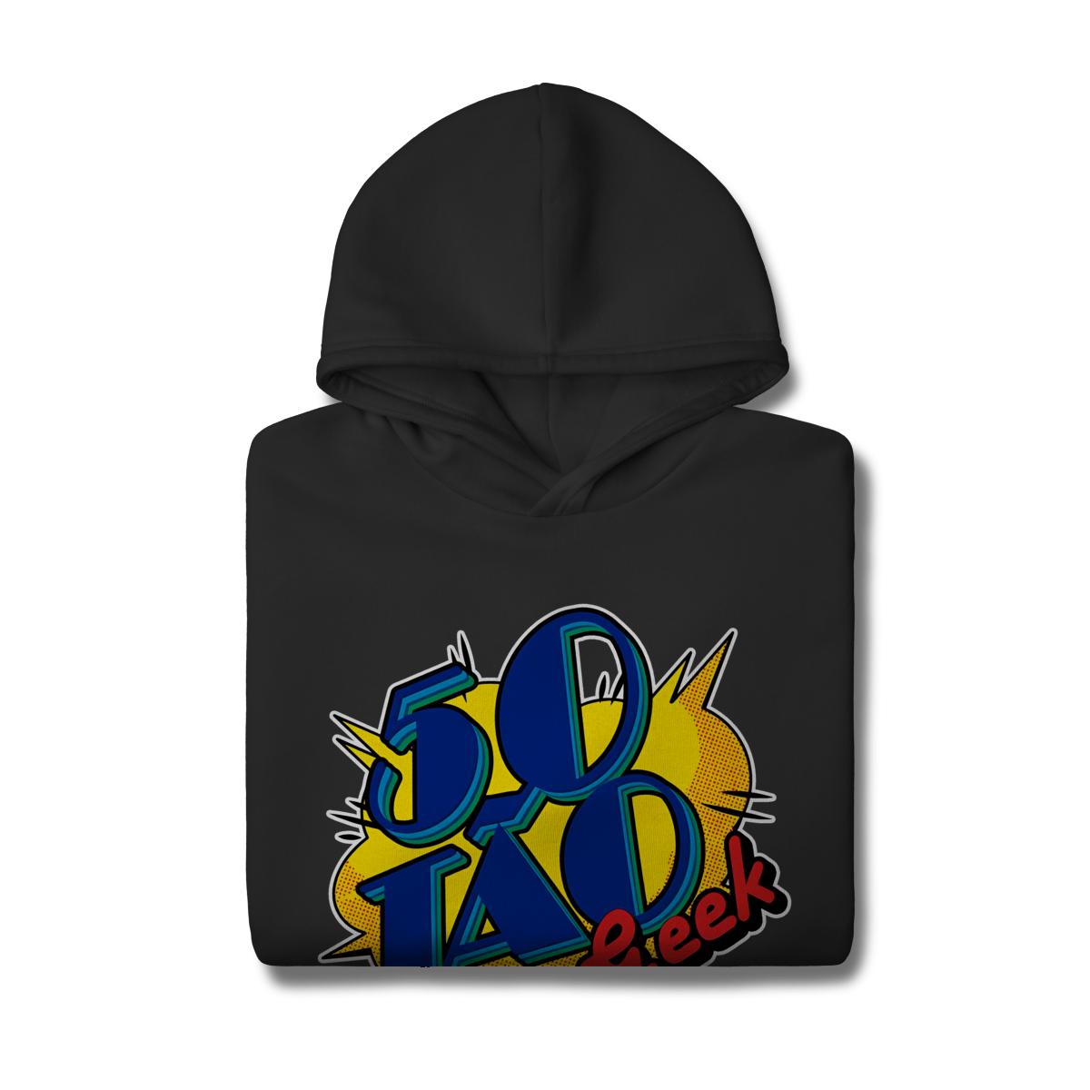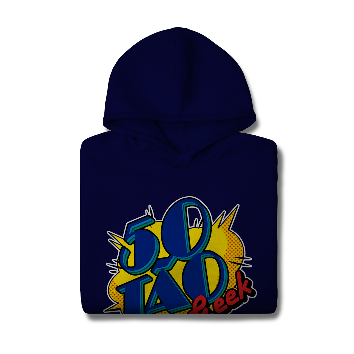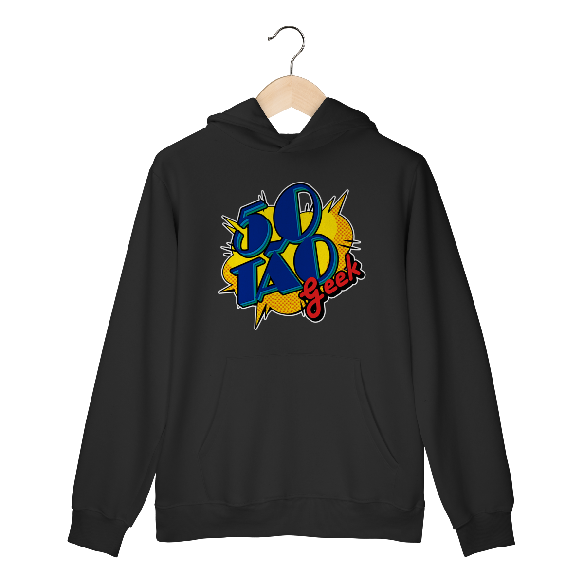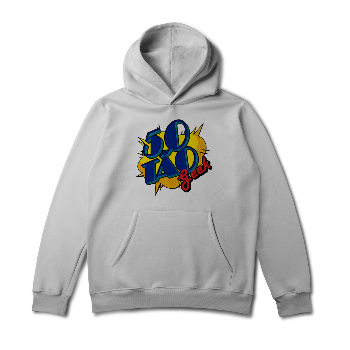 A verdadeira idade está na carteira de identidade; a alma é eternamente geek. Esta ilustração espetacular define o espírito do 50Tão Geek. Retratando a figura madura do criador, o design explode em cores e nostalgia dentro do próprio logotipo do canal em seu peito. Ícones lendários de heróis e vilões clássicos se misturam em uma colagem vibrante, simbolizando décadas de paixão pela cultura pop que agora transbordam em cada vídeo. É a estampa para quem sabe que a nerdolice não tem prazo de validade.