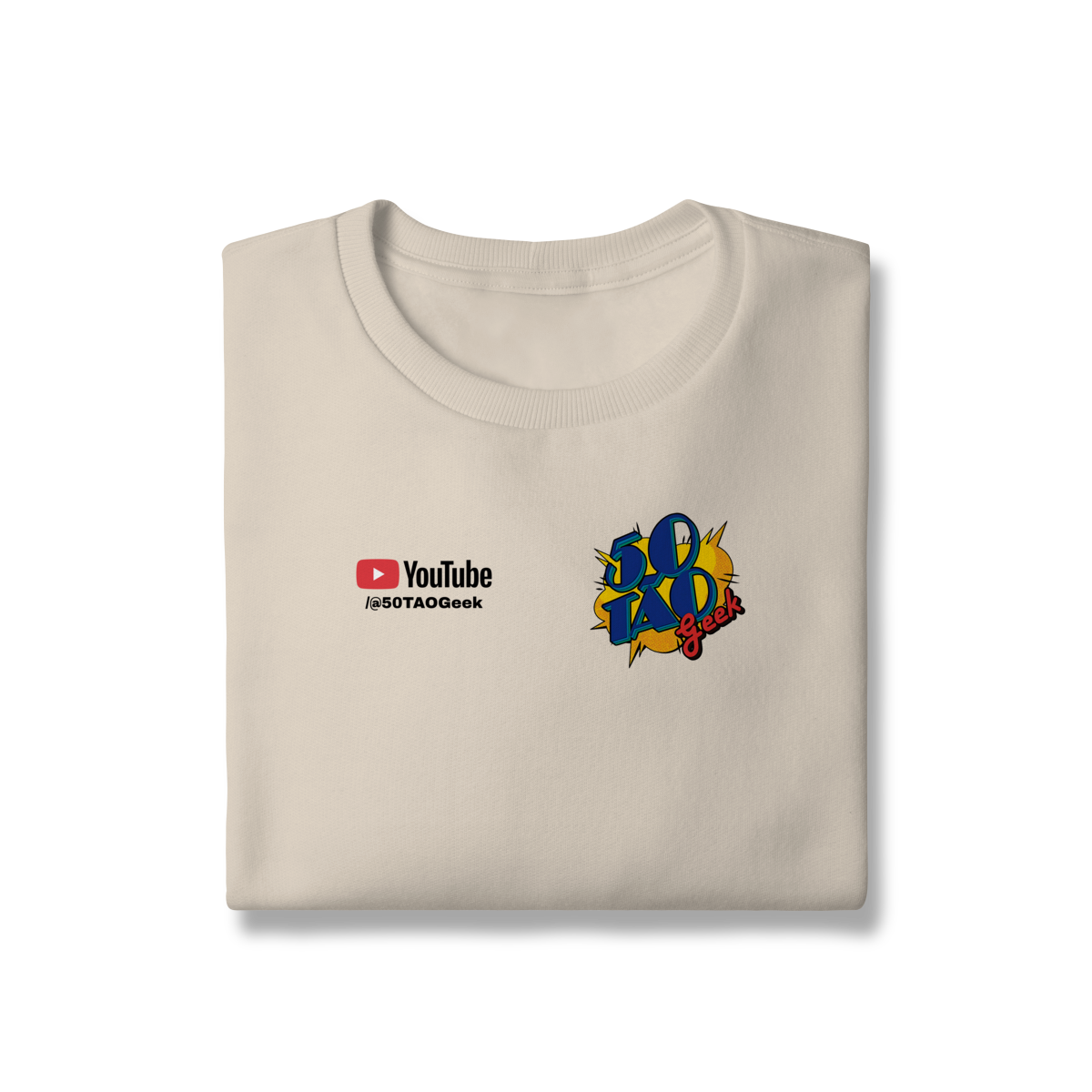 A "franquia" mais sincera da internet chegou à loja. Esta estampa oficial celebra a essência única do 50Tão Geek: muita nerdolice, opiniões sem filtro sobre cultura pop e aquele acolhimento do jeito dele. A peça traz uma caricatura exclusiva e cheia de personalidade, criada pelo artista italiano Paulo Sbacchi, acompanhada do bordão que já virou lei no canal. É o uniforme perfeito para quem curte debater filmes, séries e animes sem frescura, mas sempre com bom humor.