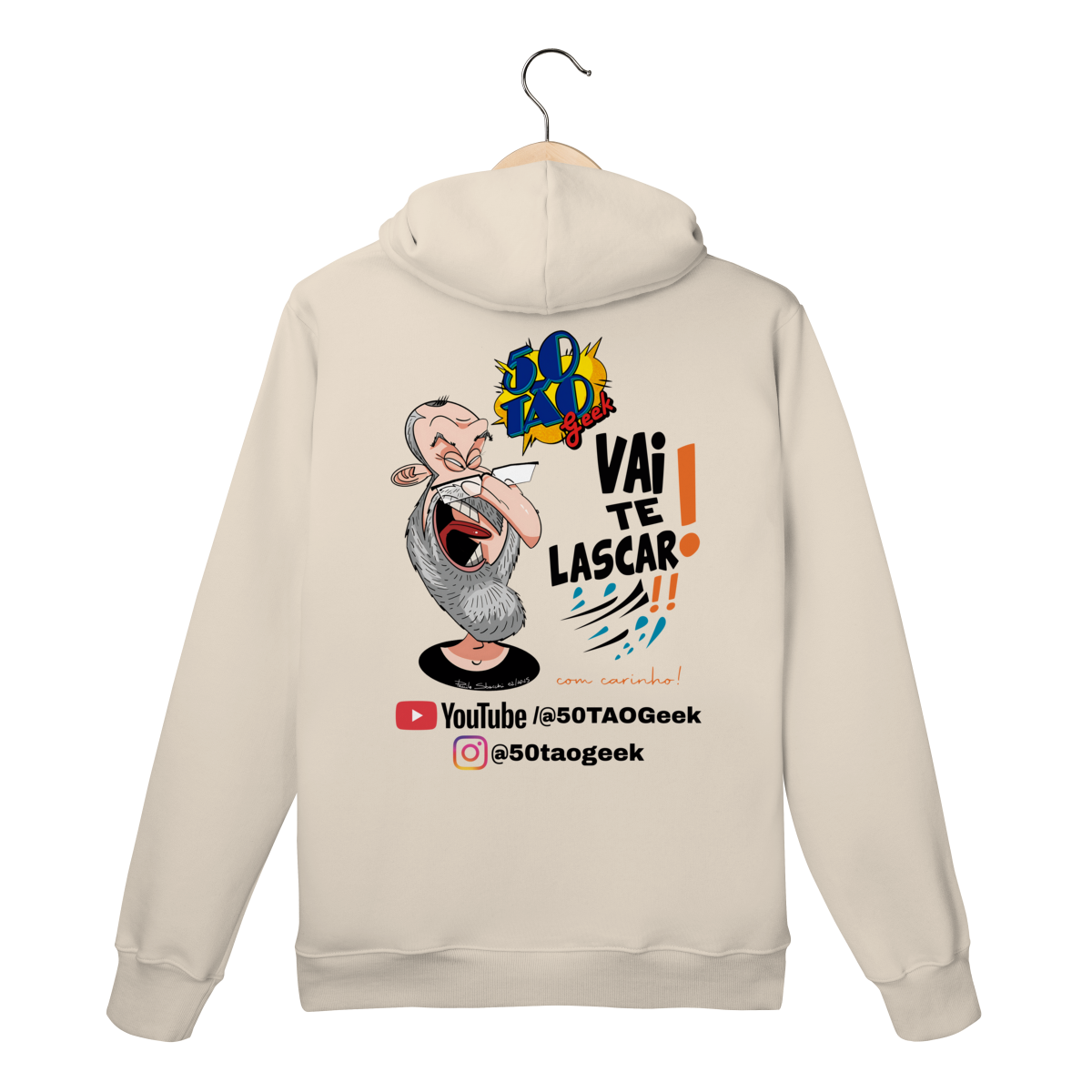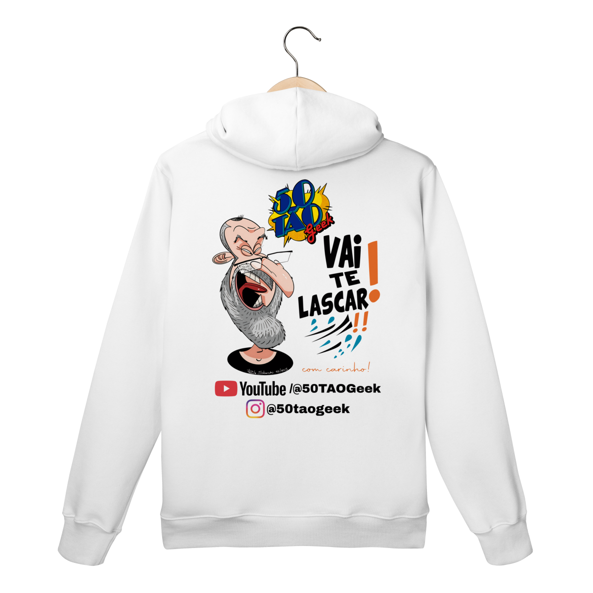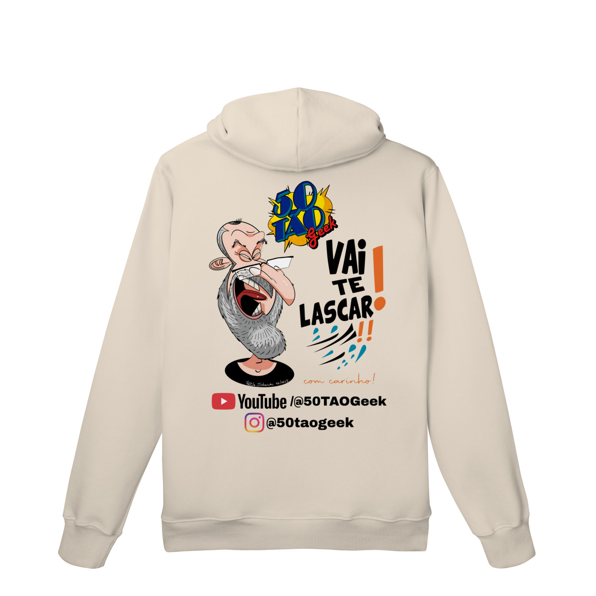 A verdadeira idade está na carteira de identidade; a alma é eternamente geek. Esta ilustração espetacular define o espírito do 50Tão Geek. Retratando a figura madura do criador, o design explode em cores e nostalgia dentro do próprio logotipo do canal em seu peito. Ícones lendários de heróis e vilões clássicos se misturam em uma colagem vibrante, simbolizando décadas de paixão pela cultura pop que agora transbordam em cada vídeo. É a estampa para quem sabe que a nerdolice não tem prazo de validade.