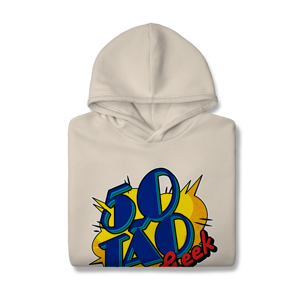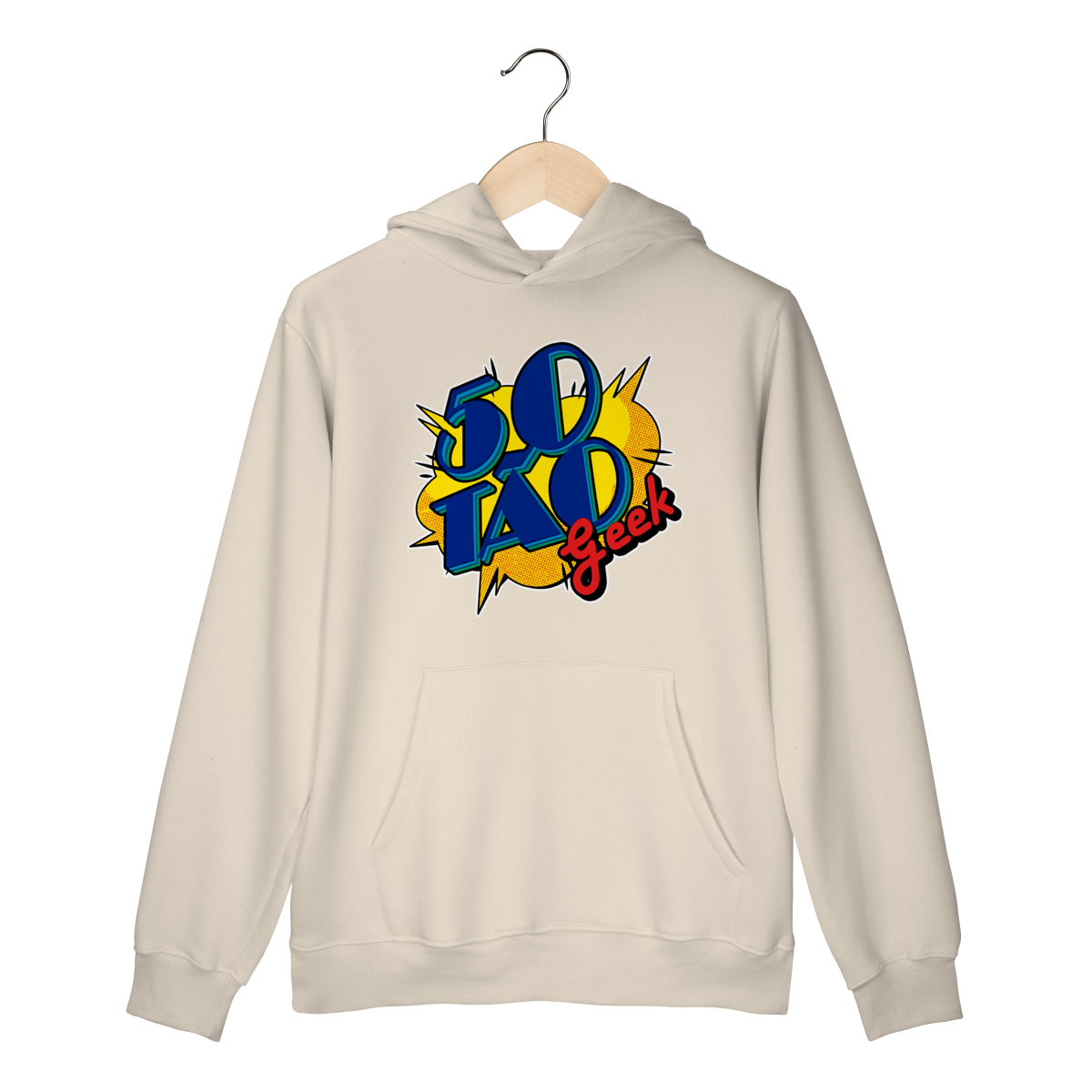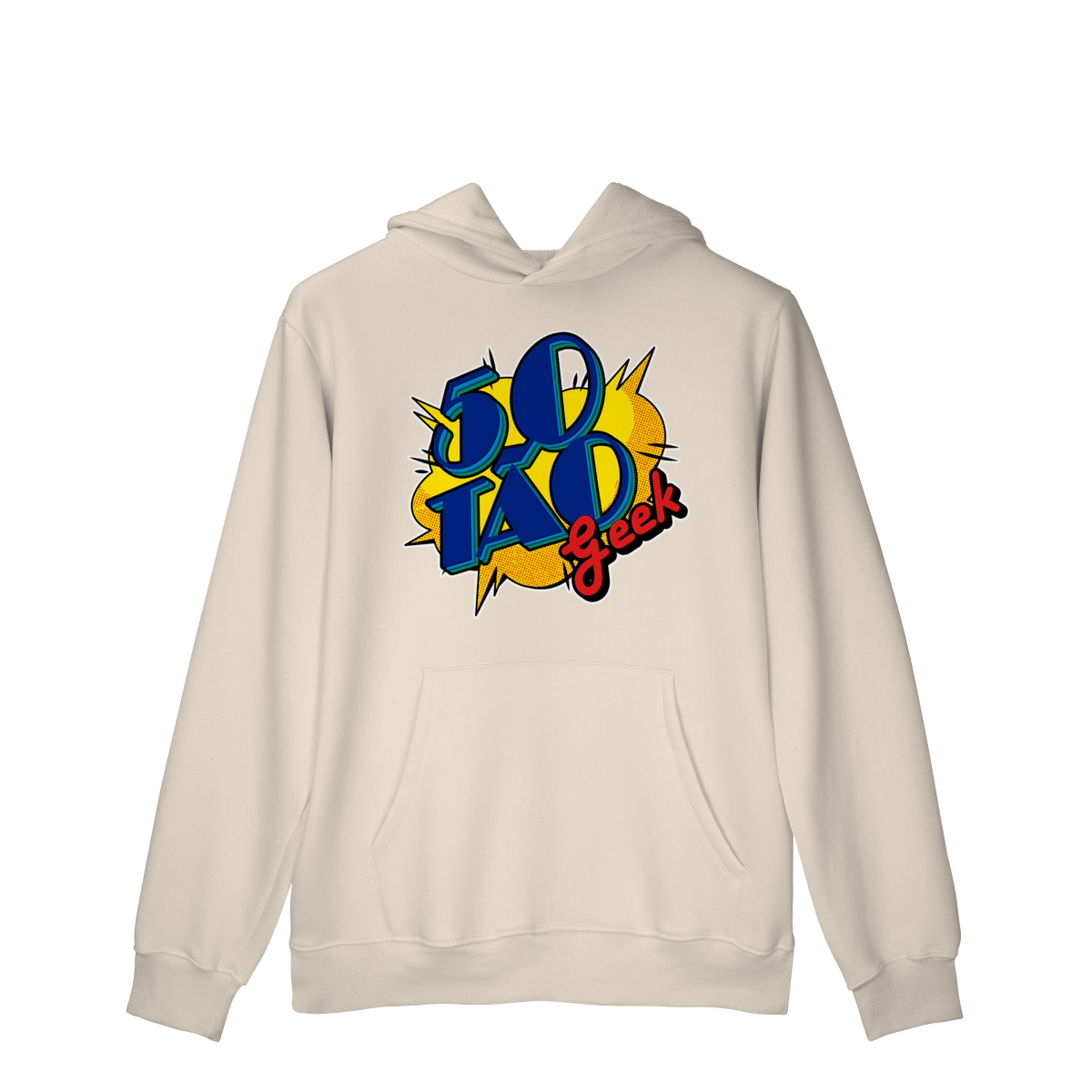 A verdadeira idade está na carteira de identidade; a alma é eternamente geek. Esta ilustração espetacular define o espírito do 50Tão Geek. Retratando a figura madura do criador, o design explode em cores e nostalgia dentro do próprio logotipo do canal em seu peito. Ícones lendários de heróis e vilões clássicos se misturam em uma colagem vibrante, simbolizando décadas de paixão pela cultura pop que agora transbordam em cada vídeo. É a estampa para quem sabe que a nerdolice não tem prazo de validade.