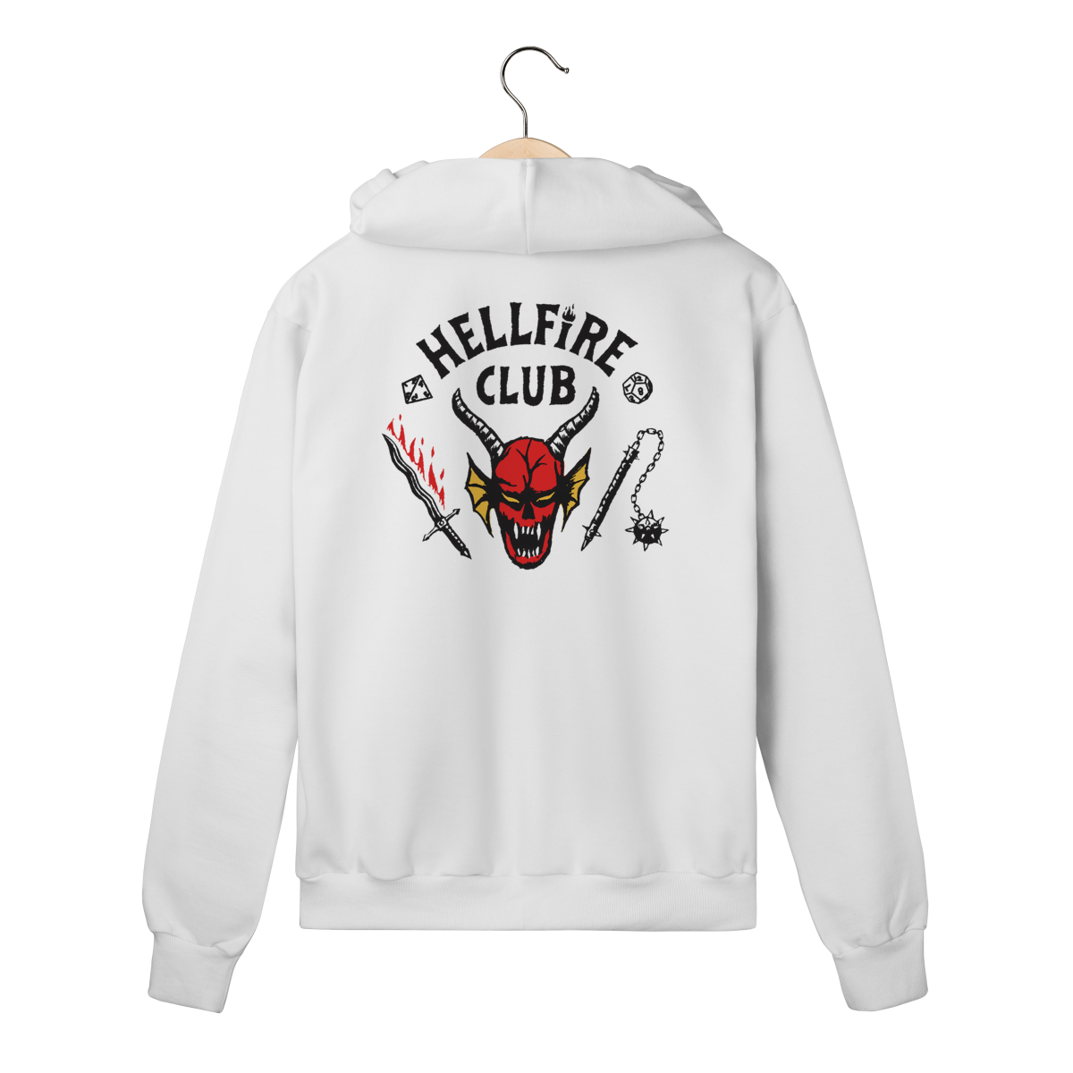 Junte-se ao clube mais mal compreendido de Hawkins. Muito antes de virar moda, Eddie Munson já sabia que RPG era coisa séria. Esta estampa reproduz fielmente o brasão do grupo, simbolizando a união dos desajustados que preferem enfrentar o Vecna rolando dados a ter que ir ao baile da escola.